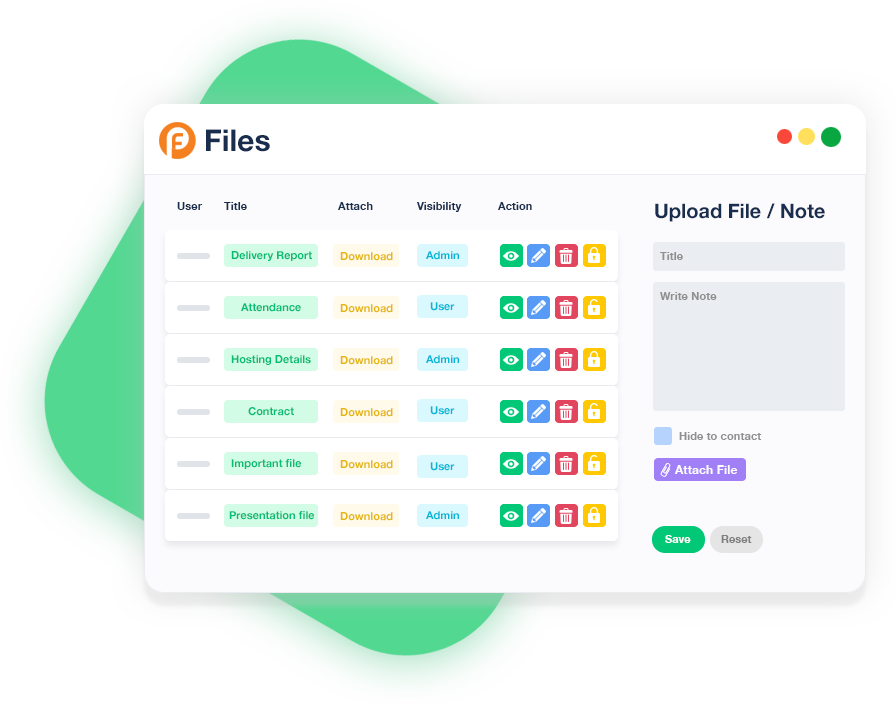 In Inno CRM, you can upload various file formats, including documents, audio and video, into the file section. You can create categories to keep your files organized and archive old files for future use, making managing and accessing important files easy and efficient. Additionally, the system allows you to set reminders for important tasks or documents, ensuring timely notifications and task completion.