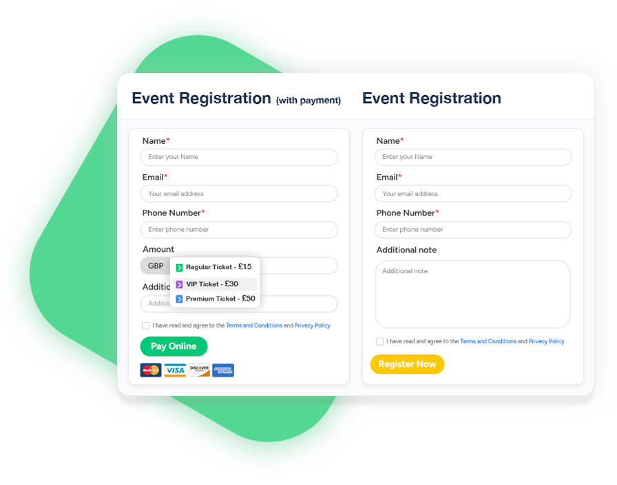 Integrated Payment Options: Accept registration payments securely through PayPal or Stripe.