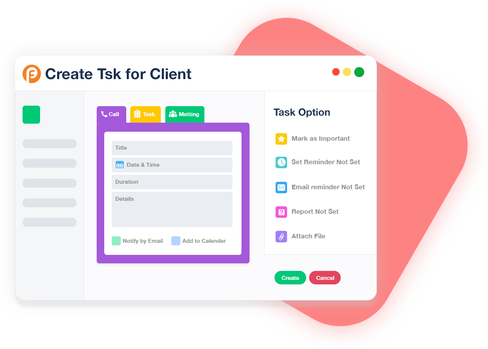 From our Inno Office, you can easily create calls, meetings or tasks from one place. You can add tasks to your dashboard calendar for tracking, upload documents relevant to each task and assign tasks to single or multiple users. Additionally, tasks can be directly assigned to specific leads or clients to manage client-specific activities. You can set reminders to ensure tasks are completed on time, mark important tasks and save closed tasks in an archive. These features help your team stay on track, prioritise tasks effectively and ensure nothing falls through the cracks, thereby improving overall workflow efficiency.