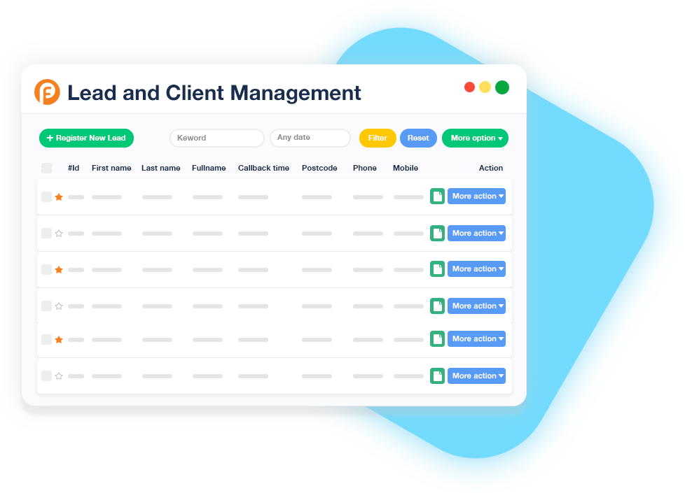 Quickly find leads and clients with advanced sorting and searching capabilities.
